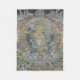 Manjushri es representado como un bodhisattva masculino asociado con una sabiduría trascendente en el budismo. El nombre sánscrito se puede traducir como "Gentle Glory". Está blandiendo una espada en llamas en su mano derecha, representando la comprensión de la trascendente sabiduría que reduce la ignorancia y la dualidad. La escritura apoyada por el loto que se sostiene en su mano izquierda es un Prajñāpāramitā sūtra, que representa su logro de la realización definitiva del florecimiento de la sabiduría. A menudo se describe a Mañjuśrī como montada en un león azul, o sentada en la piel de un león. Esto representa el uso de la sabiduría para dominar la mente, que se compara con montar o someter a un león feroz.<br />