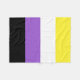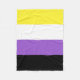 Las personas no binarias pueden identificar que tienen dos o más géneros; sin género; el desplazamiento entre los géneros o la existencia de una identidad de género fluctuante; o ser de tercer género u otro género, una categoría que incluye a aquellos que no le dan nombre a su género. Cada color de banda representa diferentes tipos de identidades no binarias: Amarillo para las personas que se identifican fuera del binario de género, blanco para las personas no binarias con múltiples géneros, morado para las personas con una mezcla de género masculino y femenino, y negro para los individuos de género.
