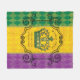 Esta elegante manta está decorada con una corona de color verde y dorado en un patrón verde, amarillo y violeta de diamantes de arlequín. El texto "Mardi Gras" junto con "Nueva Orleans" y un ejemplo de apellido para que usted lo personalize con sus propios detalles. Diseñado por la artista de renombre mundial ©Tim Coffey.