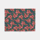 Pequeñas flores en tonos rosas se reparten en un fondo azul oscuro.