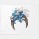 Mariposas morfo azules con alas detalladas se sientan sobre una media luna de madera decorada con plantas silvestres sobre fondo blanco. Morfo de las mariposas azules.