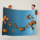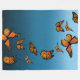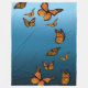 Una variedad de mariposas monarcas contra un fondo sombrío azul.