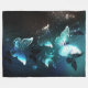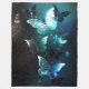 Mariposas brillantes nocturnas de menta sobre fondo abstracto negro.