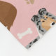 Los perros de la raza Rough Collie se sientan y se paran y vuelan con abrigos estables, tricoloreados, suaves y blancos, con huesos de perro dispersos y patrones de huellas de alfileres.