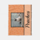 Trate a su gato o perro mascota con cierto estilo y comodidad con este adorable gato o manta de perro. Esta manta de mascota bonito presenta un fresco y alegre patrón de hojas botánicas naranjas con un sencillo borde negro. Personalizar el popular y moderno texto con el nombre de tu elección. Añada una foto especial del mascota para un toque único y personalizado.