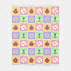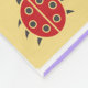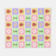 Las plazas rosadas, amarillas, violetas y verdes pasteles están adornadas con rodajas, flores de madera de palo, margaritas y abejas y bordeadas de un puntito blanco apretado para crear un divertido y dulce patrón al estilo de los parches de primavera.