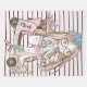 Chica y gato con dibujo de garrapatas Scooter con fondo de franjas dibujadas a mano y nombre personalizado.