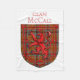 McCall Scottish tartan plaid pattern design for the McCall Clan Family underneath the red Lion Rampant Shield of Scotland.