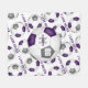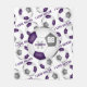 Esta frazada de pelota de fútbol deportivo presenta la imagen realista de una pelota de fútbol sobredimensionada que tiene paneles morados, grises y blancos sobre los que se puede personalizar su nombre, su número de monograma y camiseta, sobreponiendo un patrón de pelotas de fútbol más pequeñas púrpura, gris y blanco y el texto deportivo "I LOVE SOCCER" que se extiende entre las filas angladas de pelotas de fútbol - fondo es personalizable blanco - por katras z_d_zynes