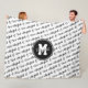 Esta manta para chicas con temática de voleibol muestra el texto "Amo el voleibol" con un tipo de letra casual escrito a mano junto con formas cardíacas con estampado negro diagonalmente en un fondo blanco - personalizable con su nombre y monograma o carta de varsity en una pendiente de círculo grande - fondo, pendiente de círculo y color de texto personalizado se puede cambiar a CUALQUIER color que contraste con el patrón de texto negro - katz_d_zynes