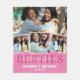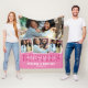 Una manta de gala de amigo con un bonito fondo rosa que puede cambiarse a cualquier color, un collage de 4 fotos que muestra tu amistad especial, las palabras "BESTIES, mejores amigos para siempre", tus nombres y el año en que te convertiste en amigos.
