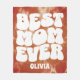 Tipografía retro groovy que dice "Mejor mamá de todos los tiempos" sobre fondo de tintes marrones de corbata. fácilmente personalizada con el nombre.