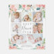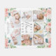 Crea una manta fotográfica para una abuela especial con flores blancas y rosas de color, el título MEJOR NANA DE TODOS EN un guión escrito a mano gris moderno y una plantilla de collage de fotos fácil de usar para 7 fotos de sus nietos y personalizadas con los nombres de los nietos o el texto de su personalizado en un fondo blanco. CAMBIO DE TÍTULO: El título puede cambiarse a Abuela, Grammy, Gamma o el apodo especial que tienen para ella. Puede cambiar el estilo, tamaño, color y ubicación del tipo de letra del texto para acomodar títulos más largos haciendo clic en PERSONALIZAR MÁS EN la sección PERSONALIZAR. ASISTENCIA: Para obtener ayuda con la modificación/personalización del diseño, el cambio de color o la transferencia del diseño a otro producto, póngase en contacto con el diseñador ANTES DE PEDERLO a través de la pestaña MENSAJE de chat de Zazzle o envíe un correo electrónico a makeitaboutyoustore@gmail.com.