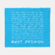 Descubrí la página por casualidad, quiera hacer un regalo a una compañera que se marchaba de la empresa y al ver la manta nos pareció una idea muy original. La verdad que teníamos nuestras dudas pero al verlo nos sorprendió la buena calidad de la impresión parecía que las letras forman parte del tejido de la manta no se notaba nada la marca de la impresión la verdad que nos sorprendió a todos y se que algunos de mis compañeros han pedido otra manta para hacer regalos a otras personas por la original y por la calidad