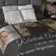 Consuelo, calidez y recuerdos afectuosos, todo envuelto en uno. Descubre la manta conmemorativa funeraria única y elegante. Un recuerdo verdaderamente especial, esta manta te permite inmortalizar tus recuerdos queridos con la inclusión de tres fotos, texto personalizado y un mensaje personal. Hazlo verdaderamente tuyo o un regalo considerado para un ser querido que experimenta una pérdida personalizando los estilos de fuente, tamaño, color y fondo.