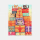 Una enorme pila de coloridos regalos de cumpleaños custodiados por gatos lúdicos y curiosos.