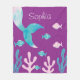 Bring a magical touch to your child’s room with this Mermaid Fish Under the Sea Pastel Purple Girls Fleece Blanket! Featuring a charming mermaid design with fish and soft pink and blue pastel colors, this purple fleece blanket can be customized with your child’s name, making it a special and personalized keepsake.