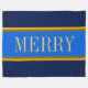 Este elegante diseño cuenta con una amplia franja central horizontal azul brillante, delineada en pinstripes blancas esporádicas entre las rayas de la marina exterior. El texto opcional MERRY, si se utiliza, se puede personalizar.