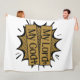 Esta manta de lana muestra un diseño que presenta una letra impresa de Afrah con letras negras con un tema de fondo de color negro y dorado que muestra la frase "Mi Señor Dios" con cruces a cada lado de la redacción en este tema de la biblia basada en la fe. Esta manta está hecha de una pulga de poliéster 100% suave y acogedora de carnicería con una impresión de sublimación de color vibrante de borde a borde y un punteo de doble borde con una máquina trasera de color blanquecino lavable.