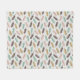 This pattern features a playful arrangement of retro-inspired feathers in pastel colors against a light grey, hand-drawn striped background.