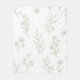 A delicate seamless floral pattern blanket featuring elegant line art illustrations of wildflowers, leafy stems, and tiny berry branches on a clean white background. This minimalist botanical design uses soft neutral tones and fine outlines to create a calm, modern aesthetic.
