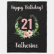 Moda negra 21ª frazada de pulpa de cumpleaños con un rosa rubor 21 y corona floral. Personalizar el nombre, edad y mensaje de bienvenida.