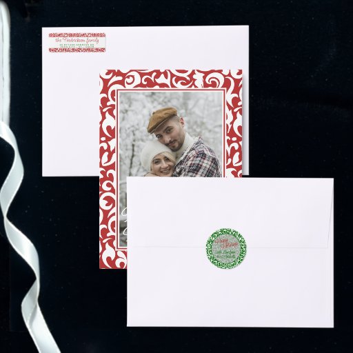 Chic Dark Red & Green White Damask Floral PatternDiseñado por Linda Yvonne - LC Graphic Design Studio