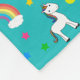 Unicornio blanco lindo moderno y de moda con los arco iris, las nubes, los corazones del arco iris, la luna y el modelo de estrellas con el fondo de la turquesa. Ideas lindas del regalo del unicornio para las mujeres y los chicas. Ideal para los cumpleaños.