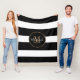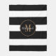 Manta Polar Modern Black White Stripes Gold Monogramado Name