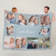 This dusty blue personalized 10-photo collage modern blanket features the phrase "World's Greatest Grandma" accompanied by elegant handwritten script typography, and cute heart and the names of beloved grandchildren. An ideal and heartwarming gift for your grandmother on special occasions like Mother's Day, Grandparents Day, Christmas, or birthdays. Customize it with photos of favorite children to create your own unique and cherished keepsake.