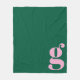 This preppy monogram design features a bold lowercase initial in a bright pink against a deep green background. The oversized letter gives it a trendy, modern feel perfect for teens and anyone who loves classic prep style. Cozy and stylish, it makes a great gift for bedrooms, dorm rooms, or lounge spaces. A fun way to personalize a space with color and personality.