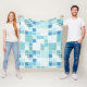 Una moderna manta de lana con un diseño a cuadros en tonos azul, turquesa verde azulado y verde. Puede realizar el personalizar rotando, escalando o arrastrando el diseño. Es agradable para una casa de playa.
