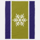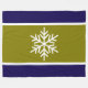 Este diseño navideño de Navidades festivos incluye un gran copo de nieve nórdico blanco centrado en una amplia aceituna dorada y rayas centrales blancas con bordes azul marino.
