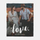 Un regalo perfecto para la pareja en su boda o aniversario, un recordatorio único de la calidez y el amor con este estilo moderno rústico negritud de escritura de amor Compromiso Fleece Blanket - un conservador acogedor y personalizado que combina con gusto el diseño moderno con el encanto rústico. Esta frazada con cuidado presenta un llamativo guión en negrita que explica "Amor" en un estilo contemporáneo, con la foto de la pareja como fondo. La estética rústica crea un ambiente atemporal y versátil que complementa cualquier decoración de casa.