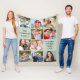 Sage green photo collage fleece blanket para mostrar y disfrutar de 10 de tus fotos favoritas de familia, amigos, nietos, mascotas, recuerdos, etc. Agregue dos secciones de su texto personalizado en la tipografía moderna.