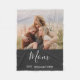 "Mom Established" modern and elegant white script with photo design custom photo fleece blanket. Excellent gift for mom on Mother's day or for a new mom or for yourself. Customize with a favorite photo of Mom and the kids or perhaps just the kids and add in their year(s) of birth. Also customize with how you call that special woman - Mom, Mum, Mommy. Elegant and simple, it will certainly put a smile on that special woman's face.