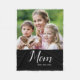 Photo blanket featuring your favorite picture and the text “Mom Est.” with a custom year to celebrate when she became a mom. Add additional years for each child to make it uniquely hers. A sweet keepsake for Mother’s Day, birthdays, or everyday love.