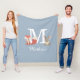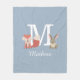 Manta de felpa azul linda con un bebé zorro del bosque y un conejo sentados a ambos lados del monograma y nombre. Diseñado por Thisisnotme©