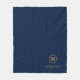 Esta manta personalizada es sencilla, sofisticada y elegante. Presenta un fondo azul marino con un monograma dorado y tipografía de escritura para su personalización. Los colores se pueden personalizar a su elección