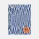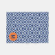 Monogramado azul real con una manta de pulpa con acento naranja.