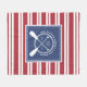 Manta de muy buen gusto en rojo, azul, y el blanco para su casa del lago. Añada su apellido, la inicial, y el año establecido a un monograma náutico de paletas cruzadas sobre un círculo de la cuerda. La manta también ofrece rayas rojas y blancas.