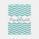 Bonito, bonita luz azul turquesa agua azul verde azulado y blanco chevron zig-zag estampado es moderno y divertido! Añada su propio nombre y un texto inicial monograma a esta ropa de cama suave personalizada que lanza la ropa de cama en un esquema de color contemporáneo para bebés. Es genial como una idea de regalo personalizada para la ducha de bebé, o cualquier ocasión. Crea tu propia manta de decoración de habitación impresa con cualquier nombre o texto, ¡es fácil y divertido!