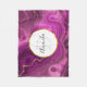 Una manta con un elegante diseño abstracto. Color amatista morado oscuro con cintas de oro enclavadas entre estratos de capas. Diseño rico y hermoso. En la parte superior hay un marco de círculo blanco con un borde de Relieve metalizado de oro falso, con su monograma personalizado inicial y su nombre en el interior.