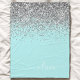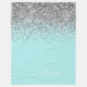 Manta de fleece con monograma de nombre e inicial de brillo plateado y azul verdoso. Esto hace el regalo perfecto para cumpleaños dulces 16, boda, ducha de novia, aniversario, ducha de bebé o fiesta de despedida de soltera para alguien que ama el lujo glamoroso y los estilos chic.