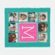 Manta Polar Monograma de Collage de fotos rosado caliente verd