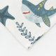 Felices tiburones azules de pizarra parecen bailar con coloridos peces oceánicos a través de la superficie de esta manta de lana. Junto con los tiburones y los peces hay peces estrella y algunas algas azules. En el centro hay un círculo blanco con su monograma y nombre en color azul y naranja. ¡Excelente para el dormitorio de un niño!