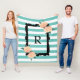 Manta Polar Monograma de marco negro orgánico y rosas rosadas