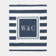 Manta de monograma con iniciales personalizadas y de moda con un patrón a rayas azules marino y blanco con tus iniciales. Diseñado por Thisisnotme©