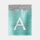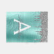 Manta de fleece con monograma y letra inicial de metal cepillado con brillo metálico plateado y azul teal acuático y falso foil. Esto hace el regalo perfecto para cumpleaños dulces 16, boda, ducha de novia, aniversario, ducha de bebé o fiesta de despedida de soltera para alguien que ama el lujo glamoroso y los estilos chic.