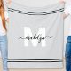 Monograma blanco y gris personalizado. Añada un toque divertido y elegante a su habitación dormitorio, casa de hermandad o cualquier espacio con esta manta personalizada. Con un suave fondo gris, el diseño muestra una inicial blanca y nítida emparejada con un nombre de guión negro que fluye para una moda y un aspecto moderno. La manta se acentúa con detalles de rayas negras en cada extremo, añadiendo un contraste divertido al diseño acogedor. Personalizable completo, todos los colores se pueden ajustar a tu estilo personal y a tu espacio. Perfecto como un regalo reflexivo para la decoración de la habitación dormitorio, los relojes de casa, los cumpleaños o cualquier ocasión especial, esta manta monocromática combina el estilo, la calidez y la practicidad para crear una novedad en tu casa.